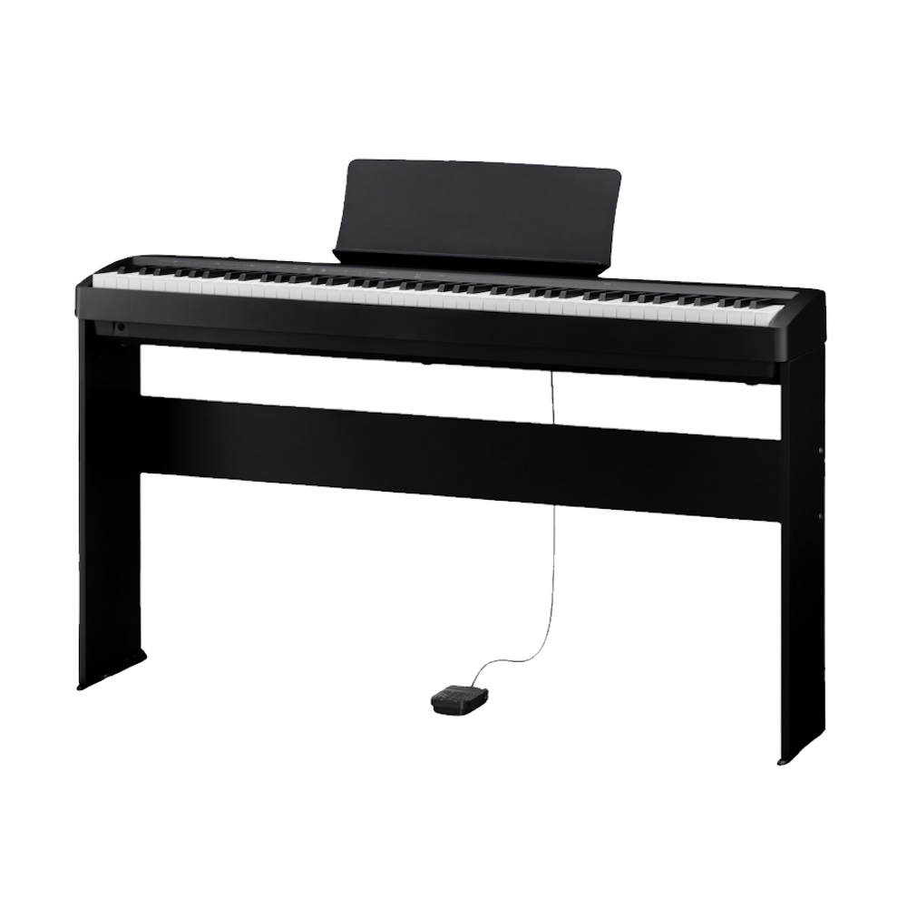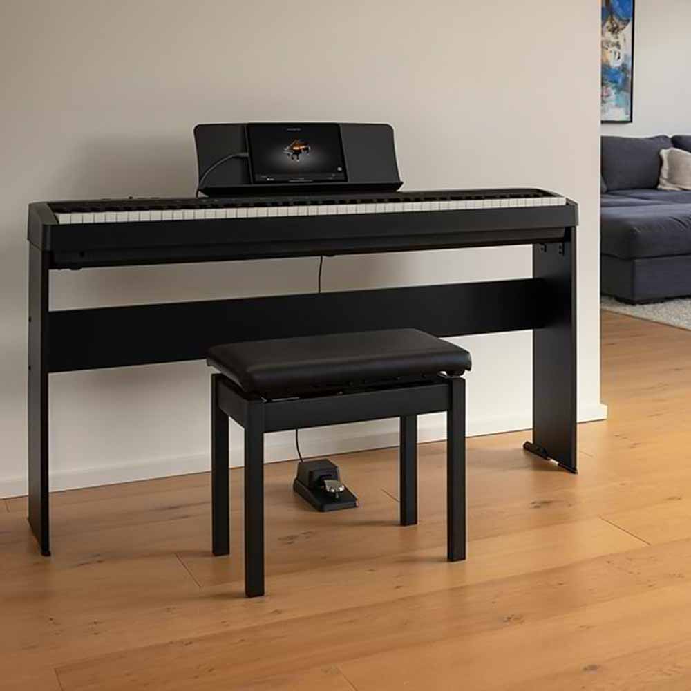 The Kawai ES60 offers a simple, yet essential package of connectivity options. A single headphone jack is provided for private practice sessions as well as stereo line out ¼” jacks for connection to PA systems and amplifiers for live performance and stage use. Although the unit does not offer any Bluetooth connectivity, users may still interact with Kawai’s PianoRemote and PiaBookPlayer apps via the USB-MIDI port. In addition to this, users can also connect with other 3rd party apps on their computer or smart device to expand the capabilities of their Kawai ES60 with an extensive range of available VST instruments and MIDI recording applications. The unit also includes a damper pedal port for use with Kawai’s F-10H or F-1SP single pedals. In fact, the F-1SP pedal is included with the Kawai ES60 in the box.