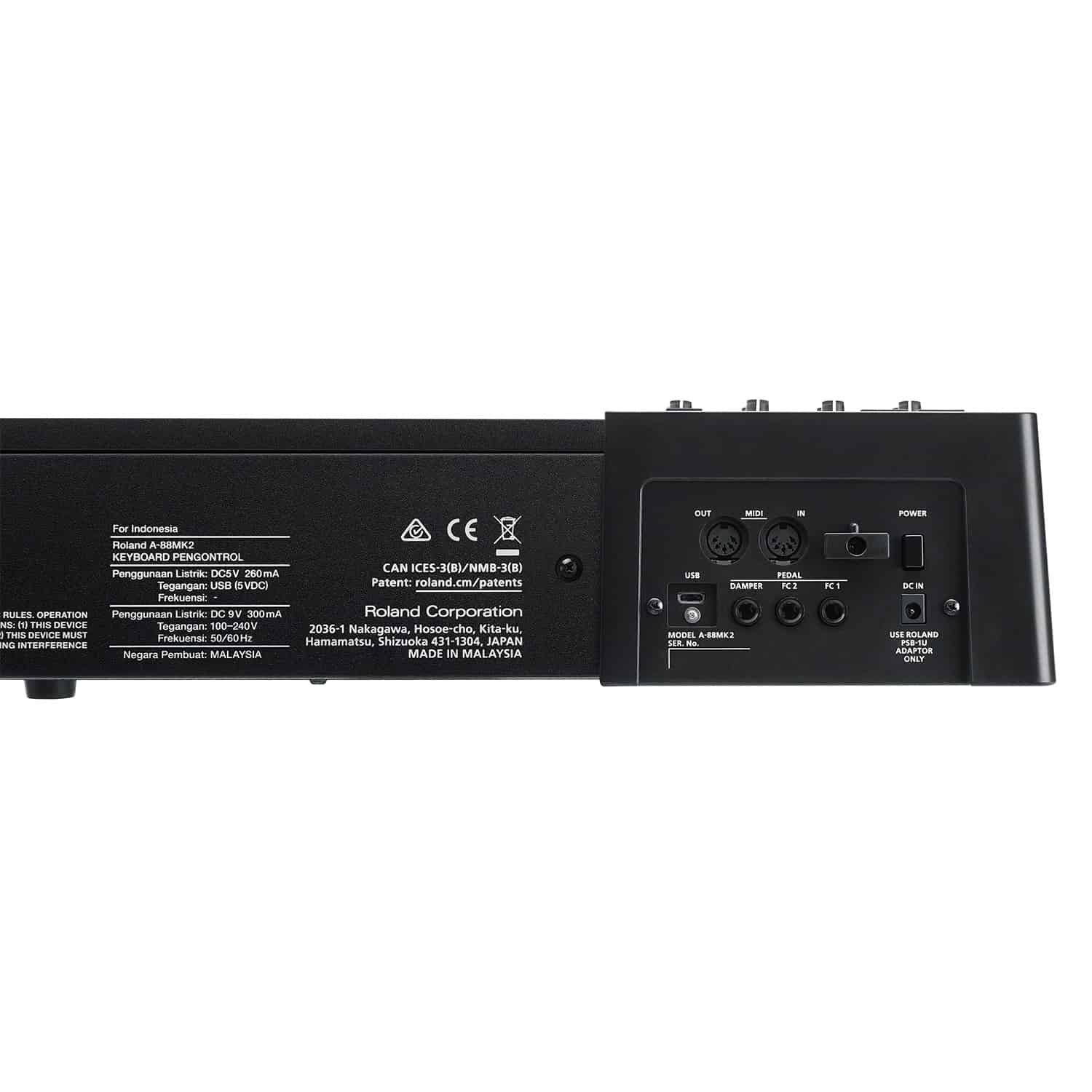 The A-88MKII has the connectivity options needed for the modern studio, including a damper and two additional assignable pedal inputs, MIDI in and out, USB type C, and a DC in jack.